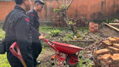 Selain memperbaiki tembok pura yang roboh, personel Brimob juga turut membersihkan area pura dan sekitarnya, memastikan lingkungan tetap bersih dan nyaman untuk digunakan oleh masyarakat.
