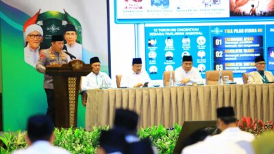 Jakarta. Kapolri Jenderal Polisi Drs. Listyo Sigit Prabowo menjadi Keynote Speech pada acara Munas Alim Ulama dan Konbes NU tahun 2025 di Hotel Sultan, Jakarta. Turut mendampingi Kapolri, Kabaintelkam, Kadivhumas, Kadivpropam, dan Wakabareskrim.