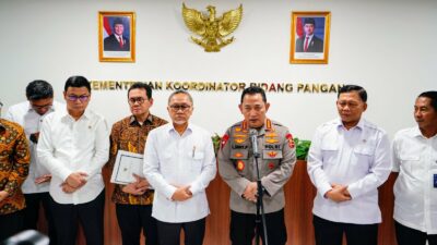 Jakarta. Kapolri Jenderal Polisi Drs. Listyo Sigit Prabowo menghadiri rapat koordinasi (rakor) terbatas bersama Menko Bidang Pangan, Zulkifli Hasan, di Kantor Kemenko Pangan, Jakarta.