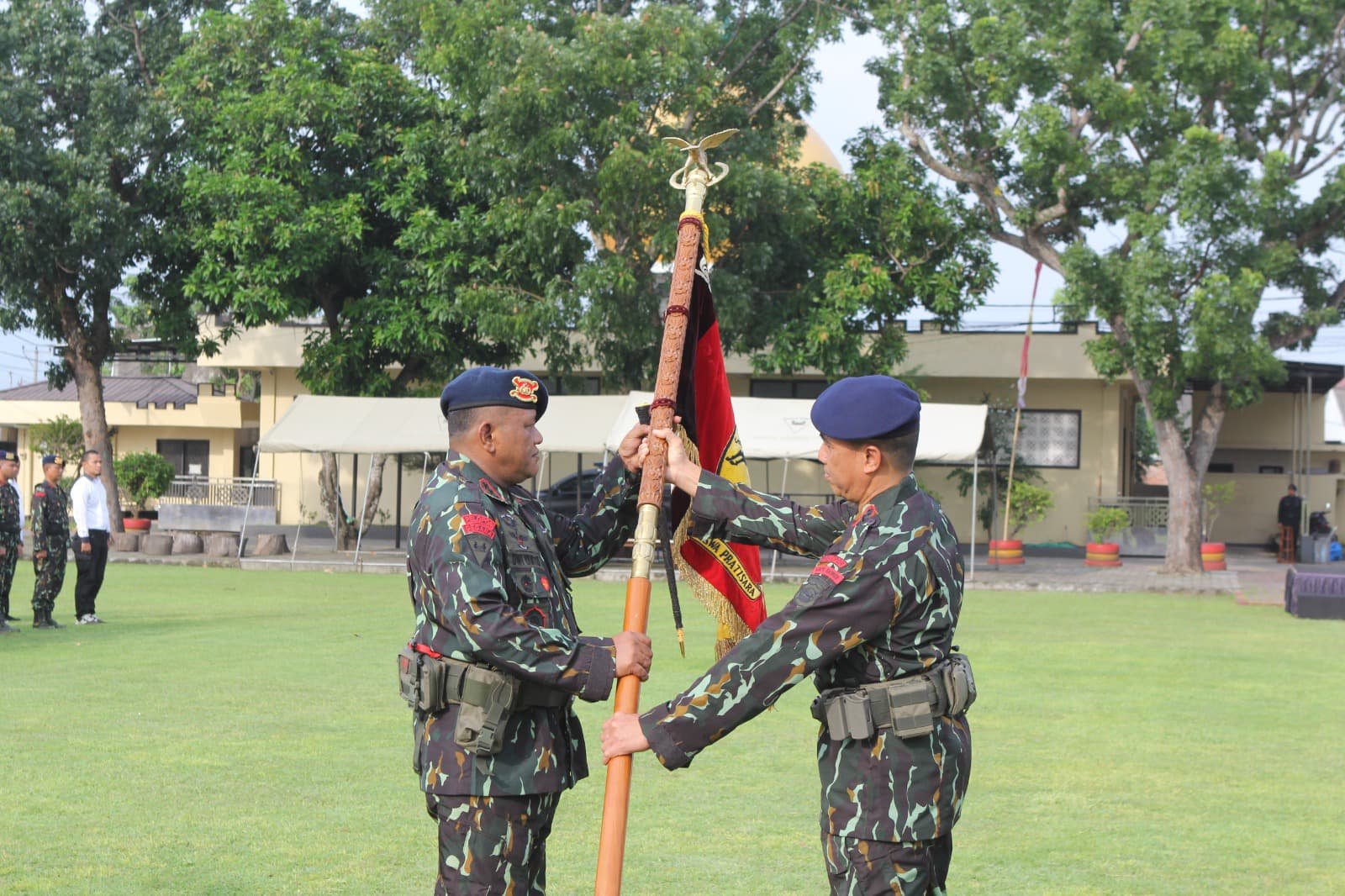 Upacara serah terima Dhuaja ‘Satya Aswa Pratisara’ berlangsung dengan penuh khidmat di Lapangan Mako Satuan Brimob Polda NTB, Selasa (25/03/2025). Acara ini menandai peralihan kepemimpinan dari Kombes Pol. Komaruz Zaman, S.I.K., M.H., kepada Kombes Pol. Dwi Yanto Nugroho, S.I.K., M.Han.