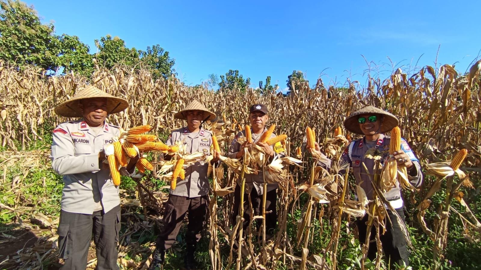 Personel Polsek Bolo Polres Bima Polda NTB dipimpin oleh Kapolseknya AKP Nurdin melaksanakan Penen raya jagung merah di Desa Rada Kecamatan Bolo Kabupaten Bima Pada Selasa (22/4/25) kemarin.