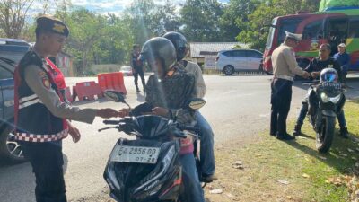 Hari pertama kegiatan tersebut digelar di Pos Lantas Desa panda Kecamatan Palibelo Kabupaten Bima Anggota Satgas Preventif Sat Samapta Polres Bima Polda NTB yang tersprin Ops Patuh Rinjani 2025 memberikan himbauan kepada para pengguna jalan.