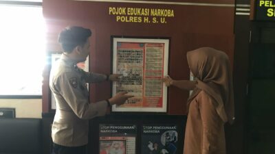 Jakarta. Kasat Resnarkoba Polres Hulu Sungai Utara (HSU), Kalimantan Selatan, AKP Sutargo, membuat pojok edukasi bahaya narkoba di ruang pelayanan